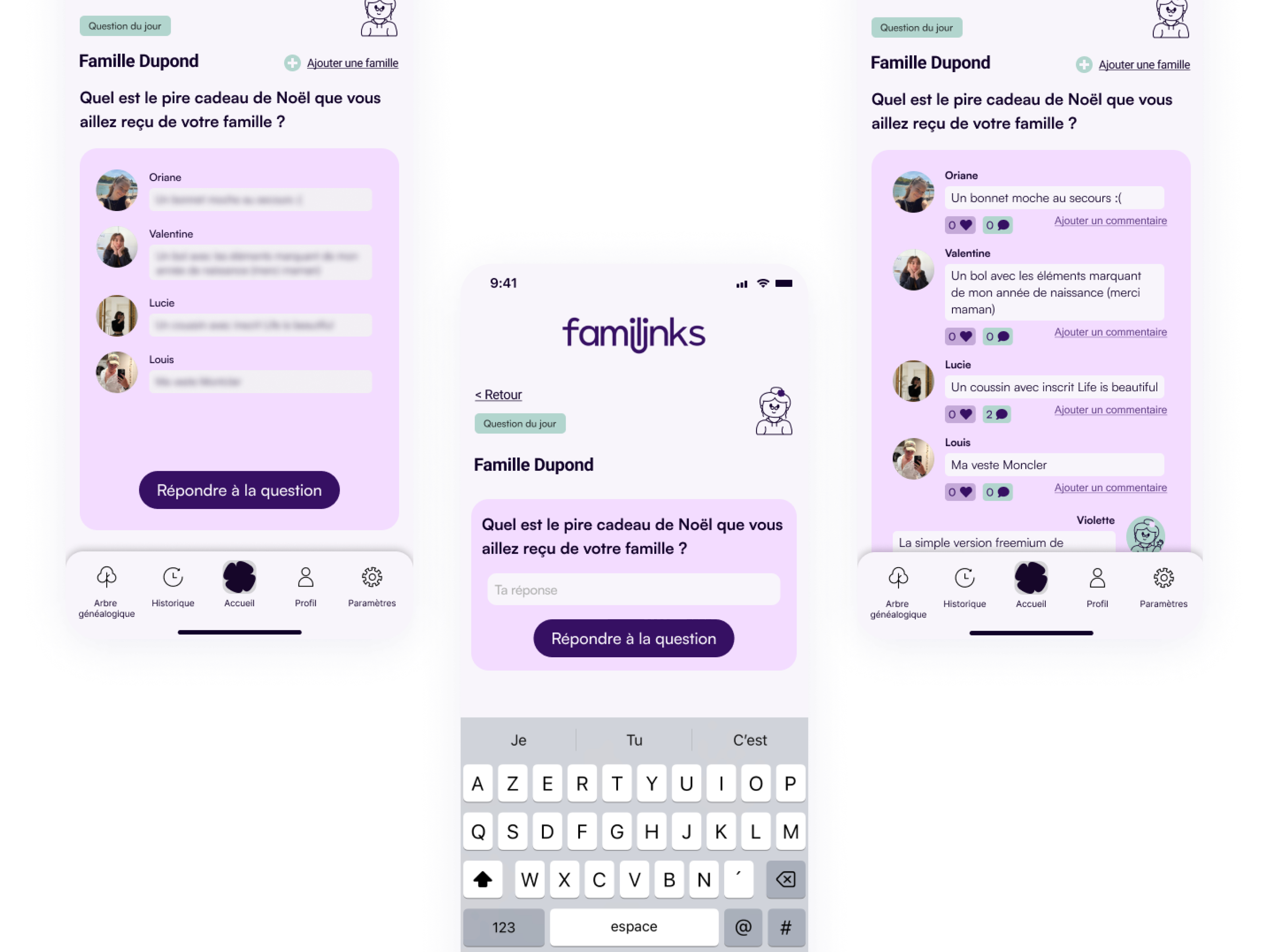 Travail sur l'ergonomie, l'accessibilité et l'interface de l'application Familinks.