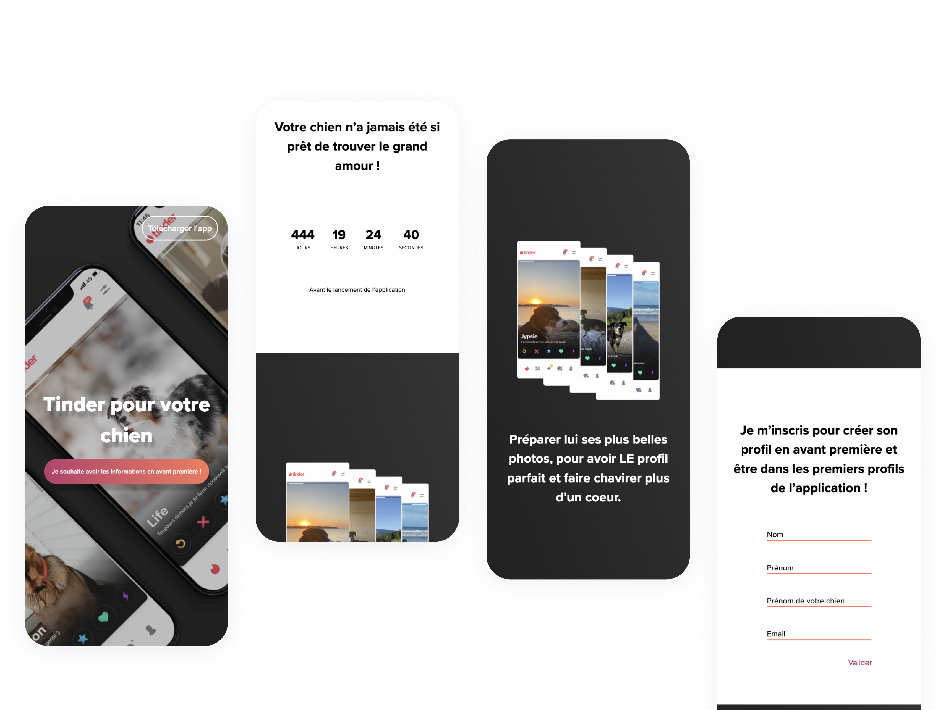 Créer une landing page pour le lancement de la nouvelle application tinder. Présence d'un formuaire de contact relié à un back-office qui gère toutes les réponses reçues.